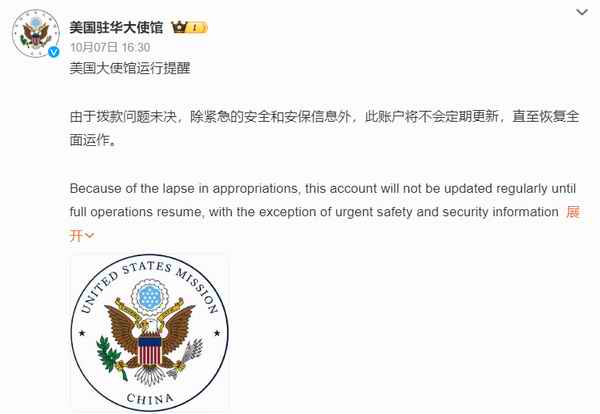 [互联网事]2025美国政府10月停摆 驻华大使馆官微官博停更 |