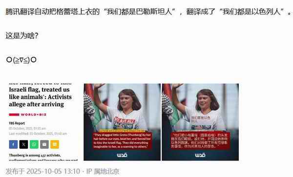 [互联网事]202510网友反映微信翻译偏向以色列 实测仍未修复 |