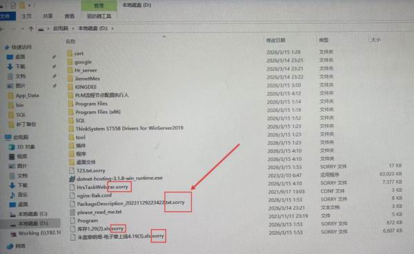 Honker.org.cn红盟网讯 近日,火绒安全工程师监测显示出现Sorry勒索软件集中攻击现象,本次中招用户均集中在财务软件使用者。攻击者定向针对中小企业财务软件发起入侵,已造成多家企业财务数据被加密、业务中断,风险等级极高。