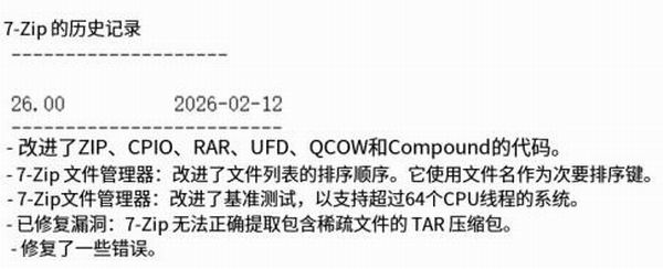 Honker.org.cn红盟网讯 当地时间 2 月 12 日,开源压缩软件 7-Zip 发布了最新的 26.00 正式版。