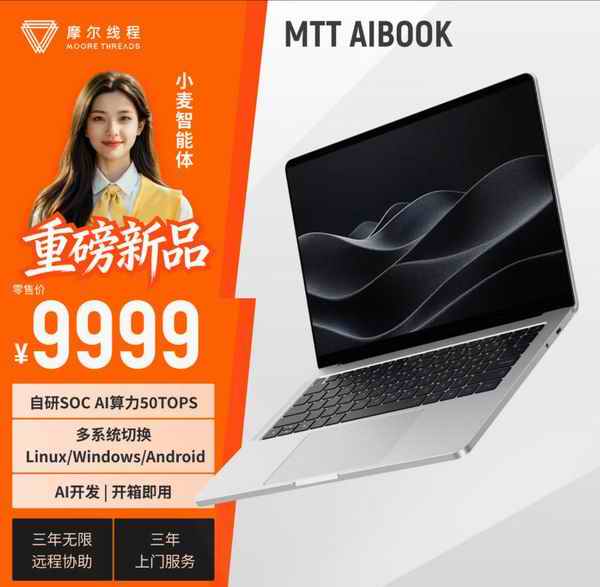 [电脑品牌]摩尔线程2026年1月开售AI笔记本电脑 支持Windows多系统 |