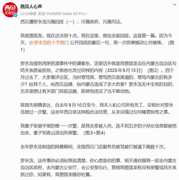 Honker.org.cn红盟网讯 快科技1月16日消息,西贝创始人贾国龙今日在微博发文:今晚10点,将就罗永浩对西贝的重大污蔑诽谤一一全面回应。